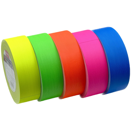 Флуоресцентный или неоновый скотч, флуоресцентный тейп - это клейкая лента, чаще всего тканевая, но также возможно и виниловое покрытие, которая светится в темноте под лучами ультрафиолетовых ламп.